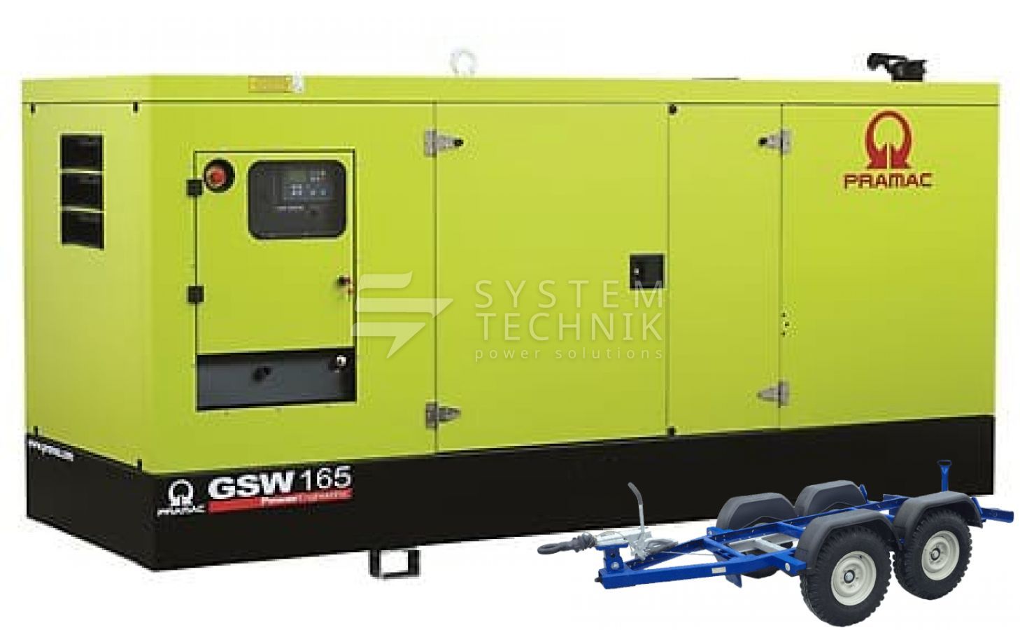 - Дизельный генератор Pramac GSW 165 V 400V В кожухе на прицепе