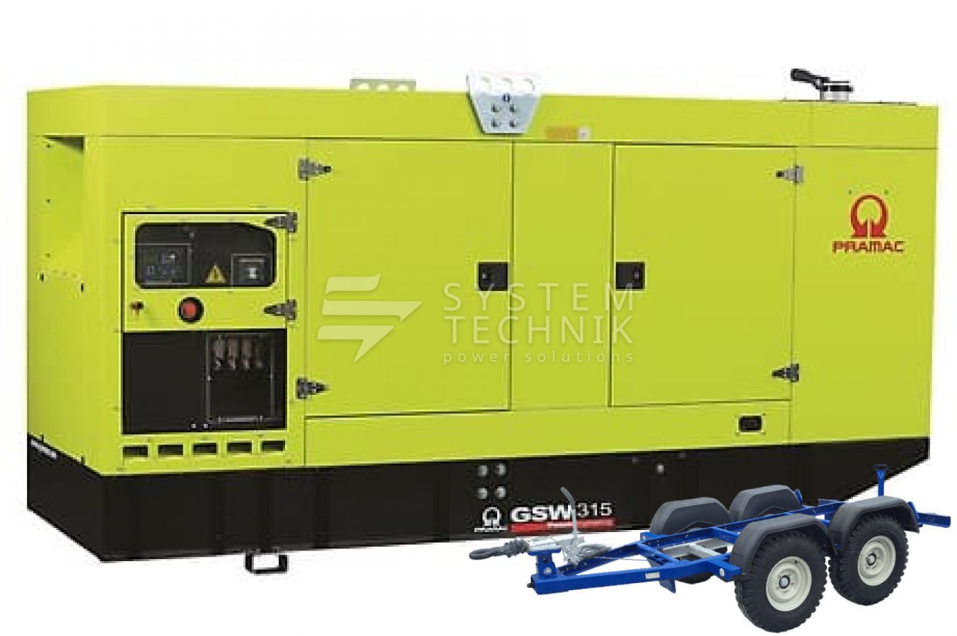 - Дизельный генератор Pramac GSW 315 P 400V В кожухе на прицепе