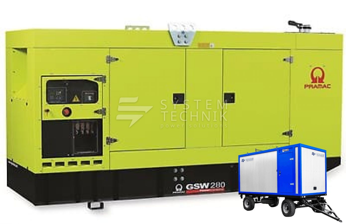 - Дизельный генератор Pramac GSW 555 V 230V 3Ф в контейнере на прицепе